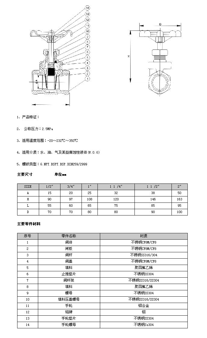 適用介質:水、蒸汽、油品