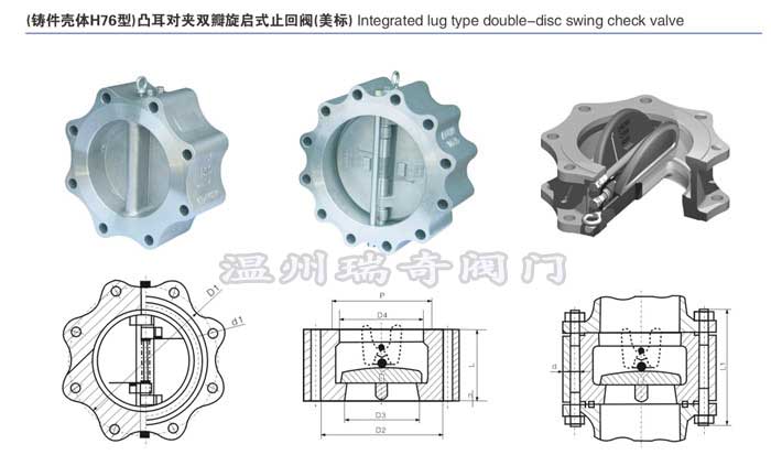 凸耳對夾式止回閥,溫州瑞奇的H76型美標凸耳對夾旋啟式止回閥適用于各種管路上,用于防止介質倒流。通過選用不同材質,適用于,水,蒸汽,油品,酸類強氧化性介質及尿素等多種介質。