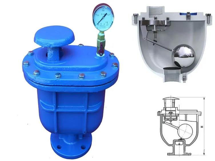 排氣閥作為快速排除管道內(nèi)氣體的設(shè)備,用來(lái)提高輸送水設(shè)備的效率和保護(hù)管道不致變形破裂,是管道的必備之設(shè)備。裝設(shè)于泵埔出口處或送配水管線中,用以大量排除管道中的集結(jié)之空氣,以增進(jìn)水管及抽水機(jī)使用效率,且與管內(nèi)一旦出現(xiàn)負(fù)壓時(shí),此閥能迅速吸入空氣,以保管線因負(fù)壓所產(chǎn)生損壞。